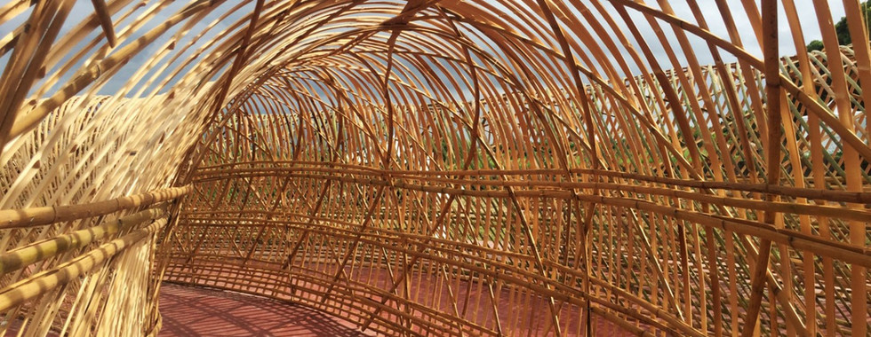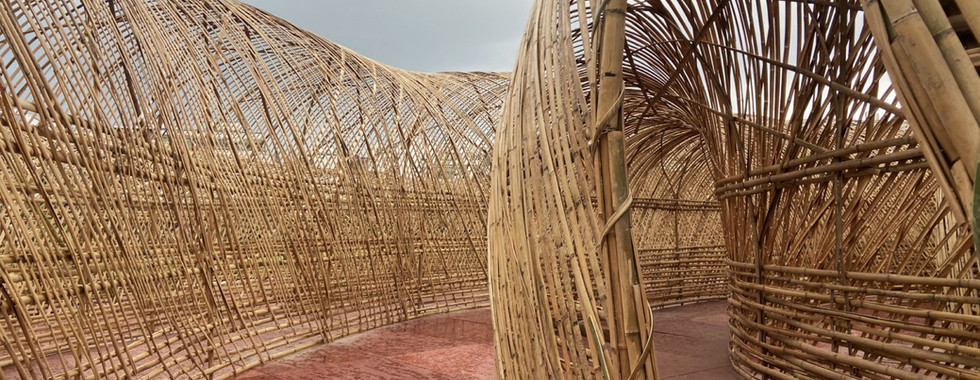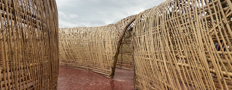 This work is made of bamboo, which is common in Asia, has a long history, and is widely used in daily life. It is also a green and sustainable material for architecture. In the working land of rice farmers, I use this green and sustainable material with Taiwan's local characteristics to produce in the farmland, so that the artwork and the land can coexist harmoniously. Using the image of ripples and mazes to interpret life like water, with the characteristics of circulating, coincidental and flow, and it also expresses the poetic image after my own natural experience, responding to the humanistic thought of nature as the spirit in Chinese natural philosophy.
