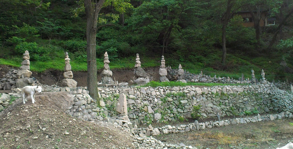 There were stones and wood piles impressed me when I arrived here. We can see such hard stones everywhere. In addition, there is a temple decorated itself with many stones. Therefore, I decided to choose a stone from the hill, reproduced the stone shape by woods, and responded to the beautiful hill town by a kind of Chinese landscape painting's expressing emotion with scenery.