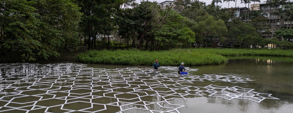Water is the most common substance on the planet and has strong liquidity. The "Water Dress" series is inspired by Dr. Masaru Emoto's study of the impact of consciousness on water crystals. Since 2019, Lee, Kuei-Chih and Lua Rivera have created unique "water dresses" in different waters. These works are like natural textiles floating on the water, like clothes tailored for water, praising the most important and mysterious substance in life in the form of art- "water".